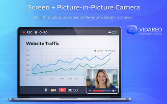 VIDAREO adalah alat perekam layar dan pesan video yang memungkinkan pengguna merekam layar, kamera, atau keduanya secara bersamaan. Alat ini dirancang untuk mempermudah berbagi pesan video secara instan dengan satu tautan, sangat cocok untuk tim penjualan, dukungan, dan komunikasi asinkron. Pengguna dapat memilih mode perekaman yang diinginkan, termasuk hanya layar atau layar dengan overlay kamera, serta memilih mikrofon dan kamera sebelum merekam.